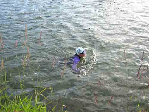 gemütliches baden immer schön am ufer lang . . . der rest der startgruppe ist schon meilenweit weg! |