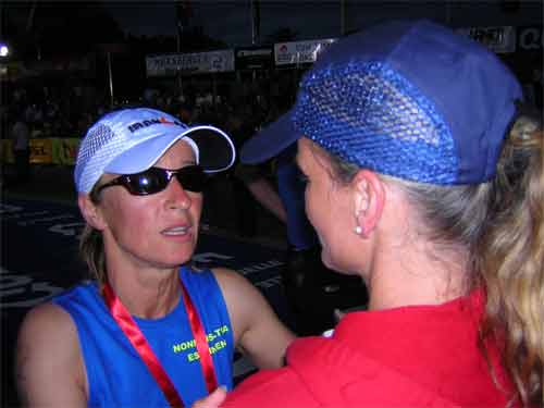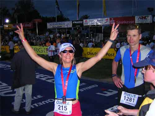 abends um 21:28 endlich im ziel. sylke gratuliert. it was a long day . . . aber 226 km sind auch ganz schoen lang! |